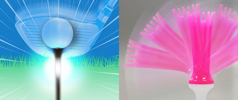 ▼首振り機能が飛距離を変えるゴルフティー「エアロスパークティー」