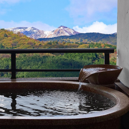 桜やゴルフ場の景色を望めるホテルや、スパ付きの高級宿は