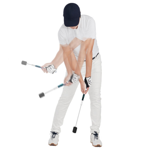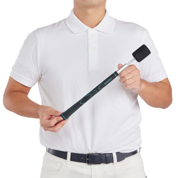 - 振るとシャフトが約61cmに伸び、正しいインパクトゾーンを体感