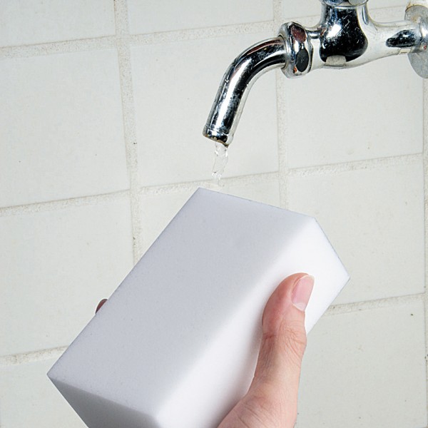 硬質のメラミン樹脂をミクロン単位に発砲させた汚れを削り取るスポンジです。洗剤を使わず水を含ませてこするだけで簡単に汚れが落ちます。