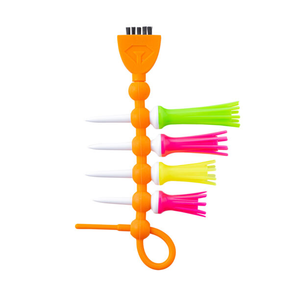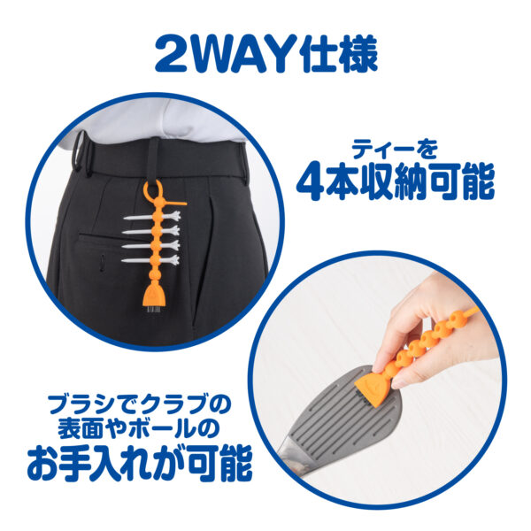 ティー収納とブラシでの掃除が1つに。ラウンド中の小物整理とお手入れを同時に叶えます。