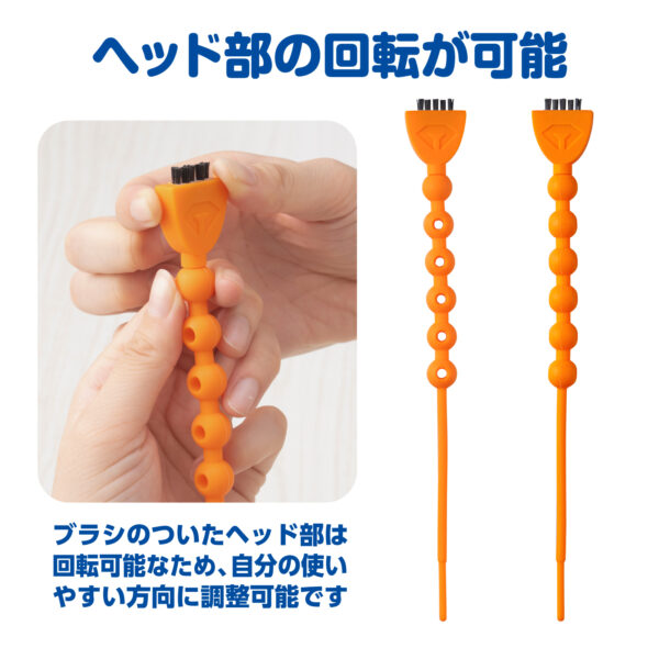 360°回転するブラシで、使いやすい角度に調整可能。効率的に泥汚れを落とせます。
