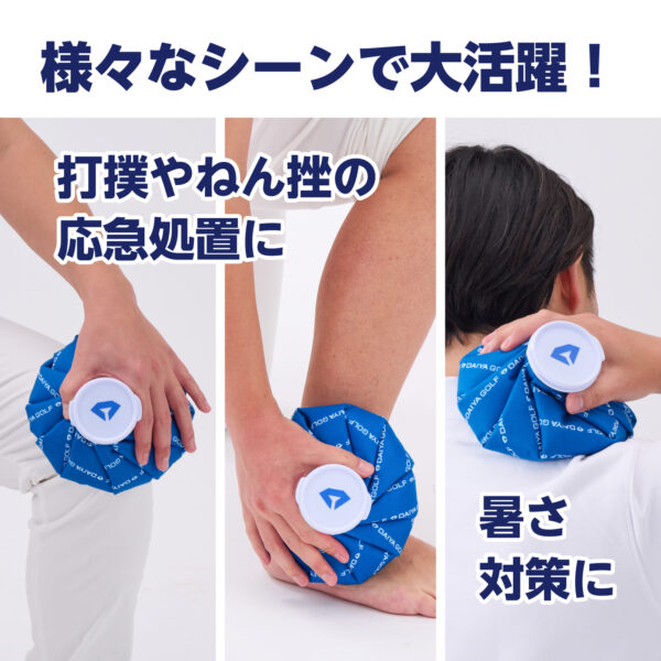 打撲やねん挫の応急処置、暑さ対策に。MサイズとLサイズから体の部位などに合わせて選べて、即効クールダウン!