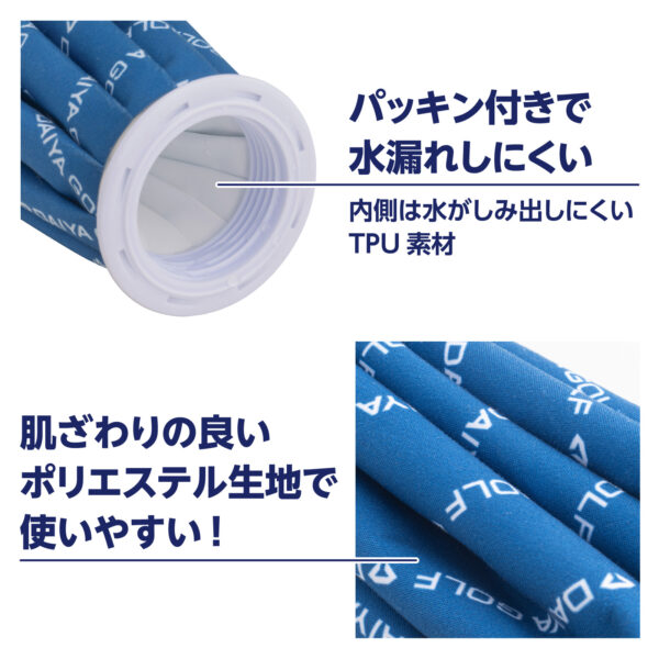 TPU素材は保冷性があり、水がしみこみにくい生地です。また、肌に触れる側は柔らかく肌ざわりが良いポリエステル生地を採用しています。