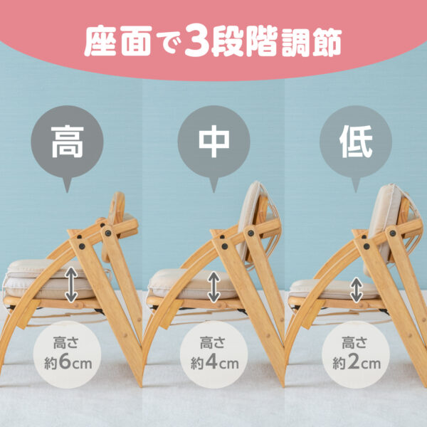 座面の高さを3段階に調節できる