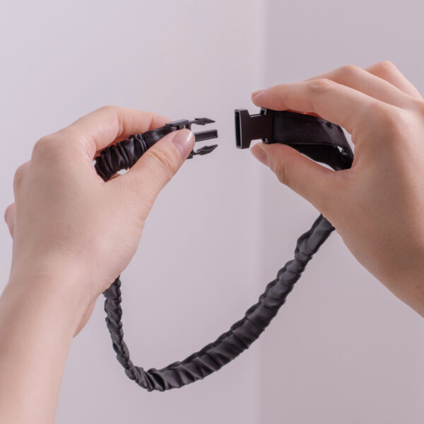 簡単に取り外し可能なバックル仕様で、ワンタッチで取り付け・取り外しができます。伸縮性ゴムバンドなので、ぴったりフィットしてアームリングを固定します。