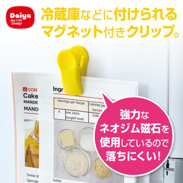 冷蔵庫などに付けられる便利なマグネット付きクリップ。
