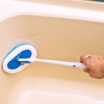 指掛けに中指を掛けることで押す時も引く時も力が逃げにくく、楽に洗うことができます。