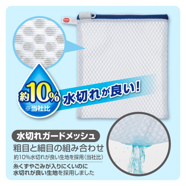 水通しが良く、糸くずやゴミを防ぐ新メッシュ生地