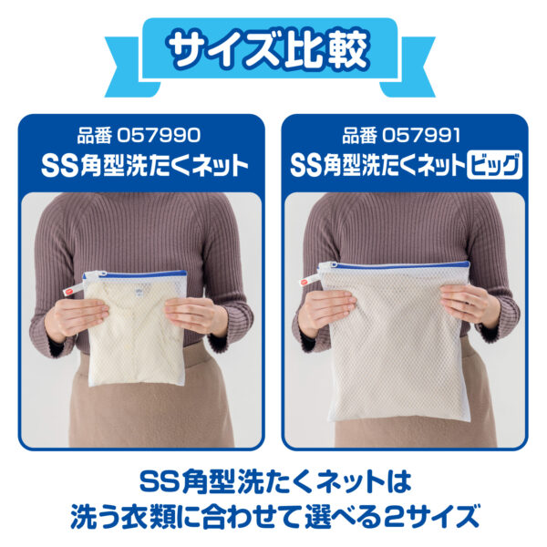 ネットの形状や用途に合わせてパッケージカラーを変更しています。こだわり洗い用、大物対応、絡まり防止、下着専用といった違いが視覚的に判断できるため、購入時の迷いを軽減します。