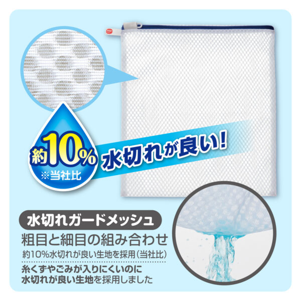 水通しが良く、糸くずやゴミを防ぐ新メッシュ生地