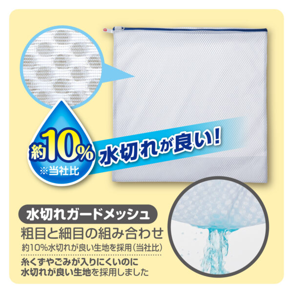 水通しが良く、糸くずやゴミを防ぐ新メッシュ生地