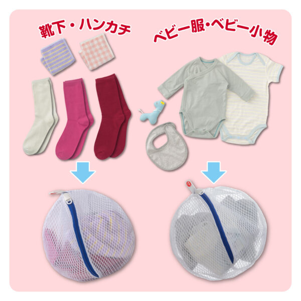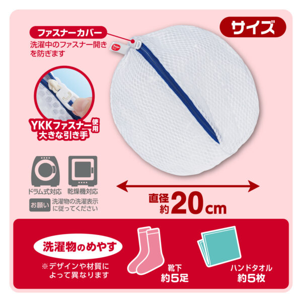 小物をまとめて洗いたい日を想定した丸形洗濯ネットです。からまりやすい衣類をまとめてスッキリ洗います。用途に合わせて選ぶことで、衣類への負担を抑えやすくなり、洗濯の失敗を減らすことにつながります。