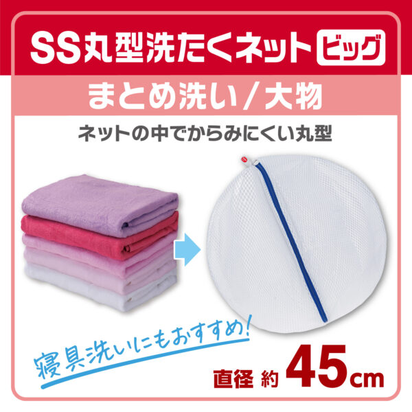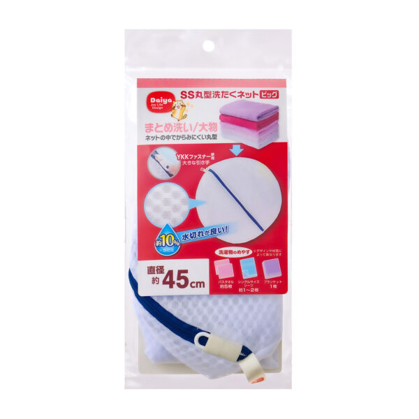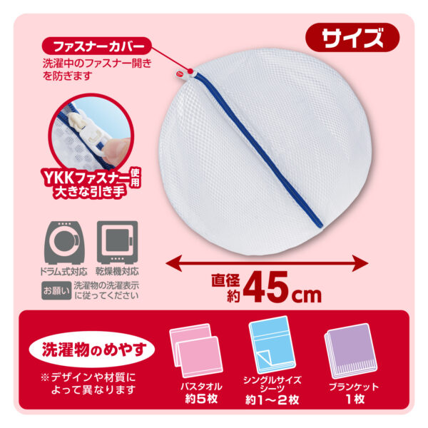 大物をまとめて洗いたい日を想定した丸形洗濯ネットです。からまりやすい衣類をまとめてスッキリ洗います。用途に合わせて選ぶことで、衣類への負担を抑えやすくなり、洗濯の失敗を減らすことにつながります。