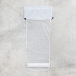無漂白の生成り生地のテープを使用し、ネットの縫い代をしっかりと包んで縫製しています。衣類を傷めずにお洗濯できます。