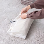 衣類をネットのサイズに畳んで入れ、半分に折り畳んで洗うことで、型くずれを防ぎます。細かい網目のメッシュ生地が洗濯物から出る糸くずなどの侵入をおさえます。