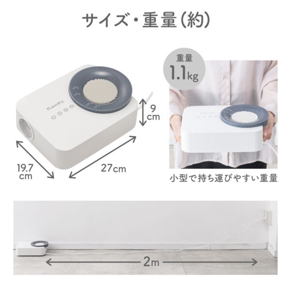 安定感のある横置き型の本体は、バタバタした朝でも玄関に置いていても倒れる心配がありません。シンプルでコンパクトなデザインは、操作しやすく、玄関やシューズクローゼットに収納しやすいデザイン設計です。