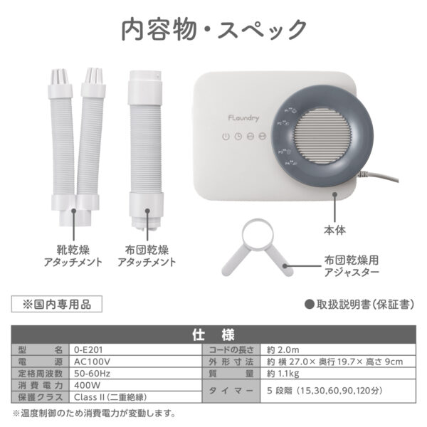 付属品 靴乾燥アタッチメント、布団乾燥アタッチメント、布団乾燥用アジャスター、取扱説明書
